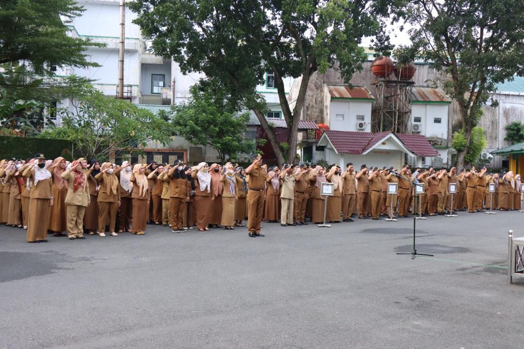 Petugas apel dari Dinas Lingkungan Hidup (LH) Kota Binjai, diikuti seluruh ASN dan Non-ASN Pemko Binjai.