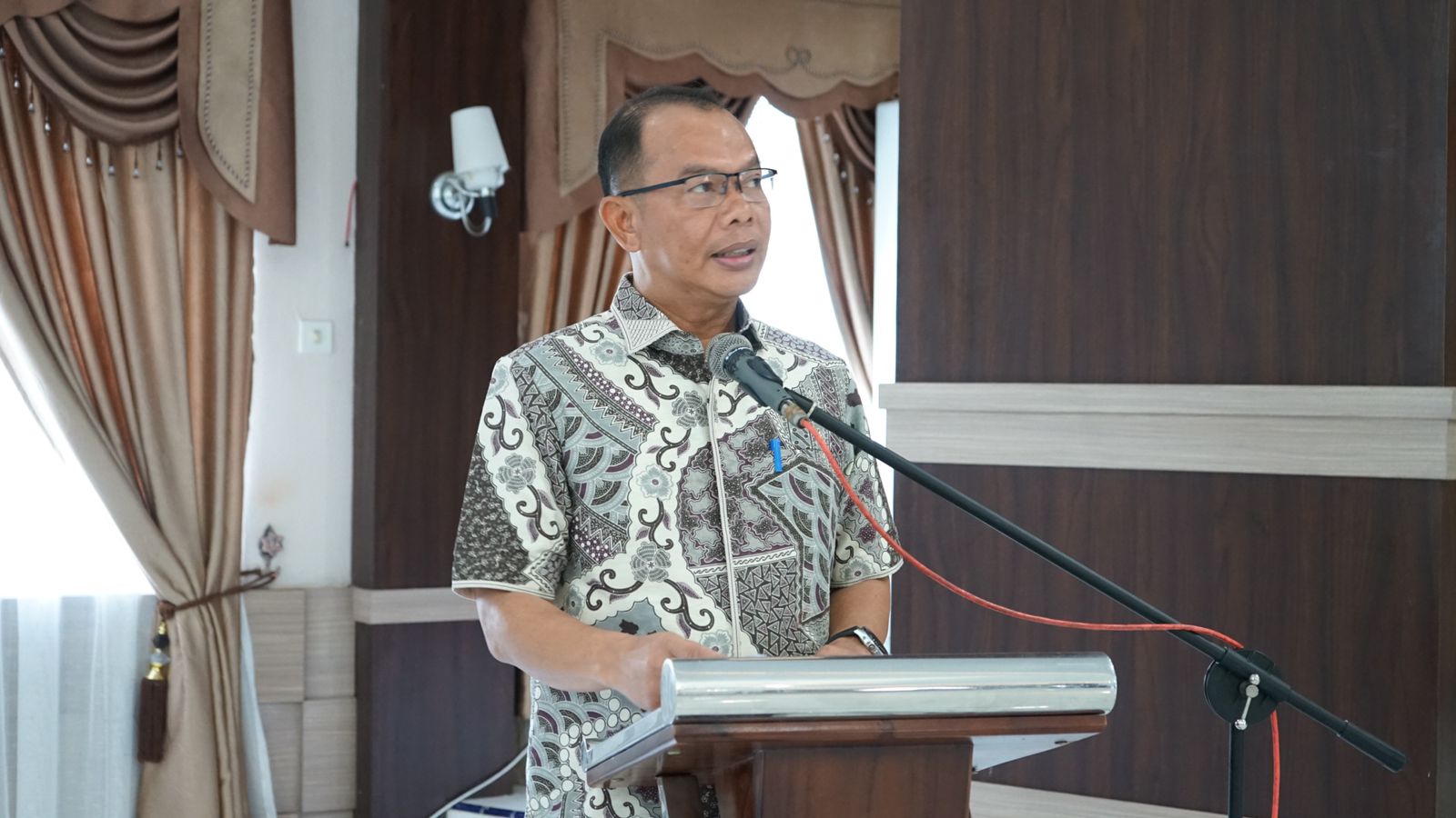 Sekdakab Langkat Amril selaku Ketua TAPD Langkat menyampaikan pelaksanaan alokasi anggaran APBD. (Diskominfo Langkat)