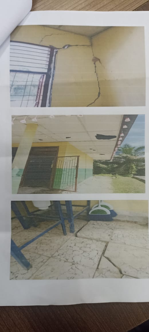 Ia juga menerangkan kerusakan bangunan sekolah akibat terjadi musibah pergeseran tanah/tanah bergerak. Kini kondisinya sangat memperhatikan, bahkan para murid dan guru harus buang air kecil dibawah pohon sawit akibat kamar mandi yang juga rusak.