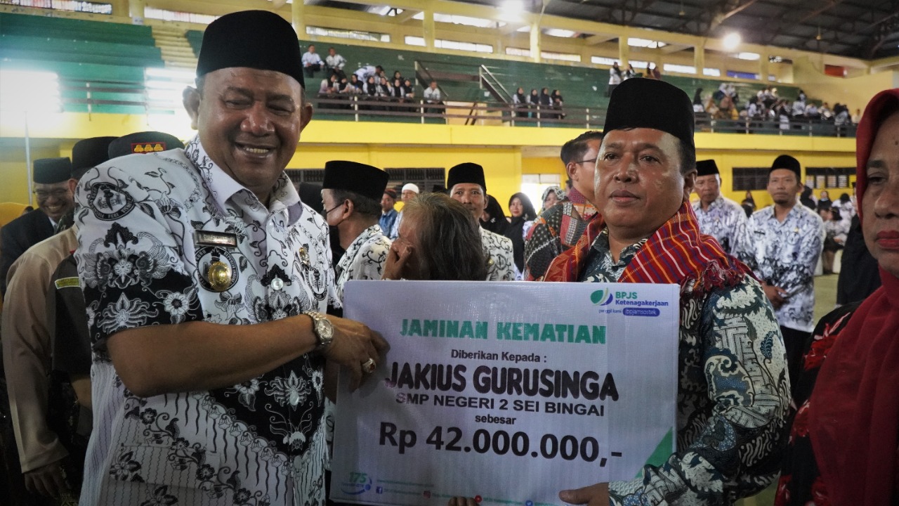 Penyerahan talihasih pensiunan kepada 6 orang pensiunan. Penyerahan manfaat santunan jaminan kematian BPJS Ketenagakerjaan sebesar Rp42.000.000, kepada almarhum :