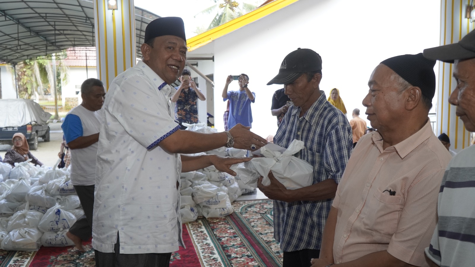 NON-STOP.id – Plt Bupati Langkat H Syah Afandin menyerahkan bantuan Ramadan di Jentera Malay, Rumah Dinas Bupati Langkat, Jumat (14/4).